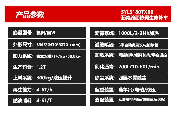 3)?具備出色的熱再生功能,舊瀝青路面再生利用率達(dá)到100%,坑槽挖補(bǔ)出的廢舊瀝青混合料無需粉碎,可百分百現(xiàn)場(chǎng)熱再生。具有較大產(chǎn)量、較高效率、較低施工成本、節(jié)能環(huán)保性能突出等特點(diǎn)。
